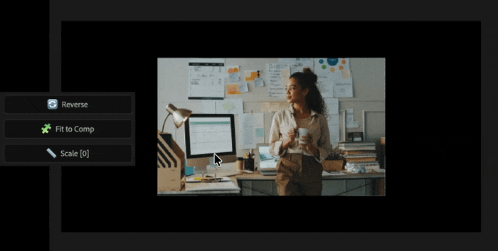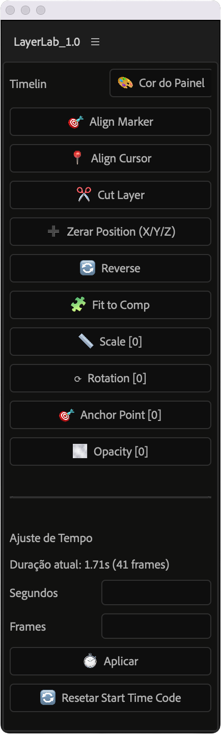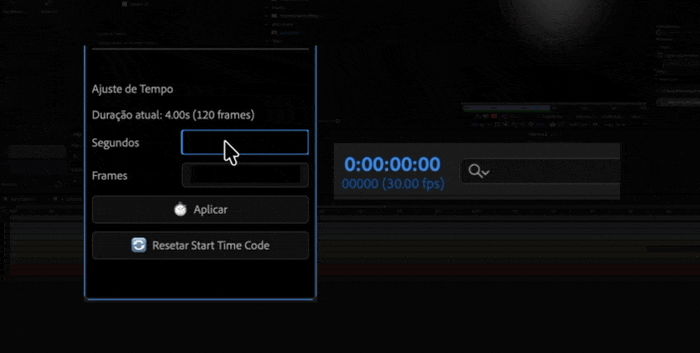 Controle rápido do tempo da composição podendo escolher entre tempo/frames sem a necessidade de abrir as configurações.
