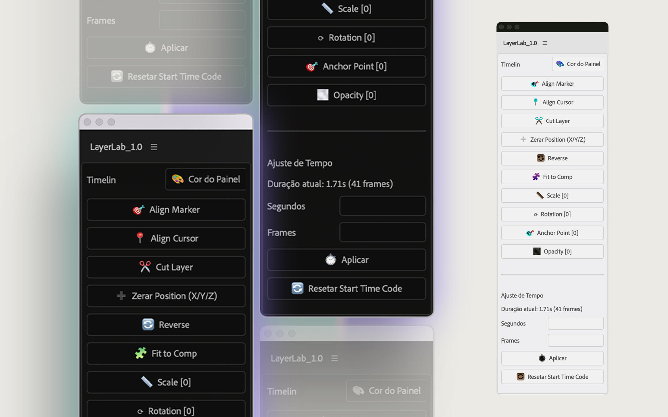 O LayerLabs reúne ferramentas que agilizam o After Effects com apenas um clique, tornando a animação mais rápida, simples e personalizada. Produtividade garantida.
