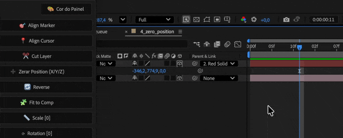 Sempre que parenteamos um layer as propriedades sãio alteradas, com o Zero Position todos os eixos x, y e z sao zerados de uma vez.
