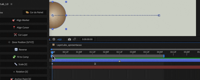 Arraste sua agulha de tempo e ao clicar em Align Cursor todo o conteúdo se move mantendo integralmente todos os times de layers.
