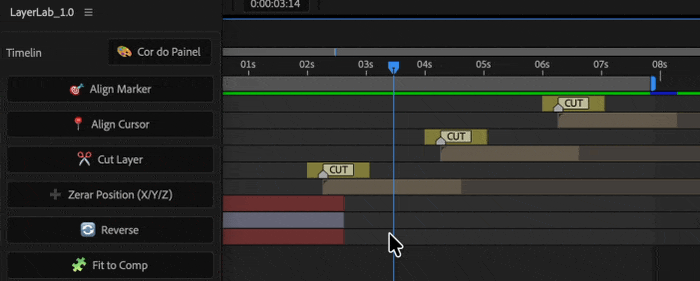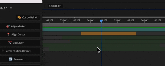 Arraste sua agulha de tempo e ao clicar em Align Cursor todo o conteúdo se move mantendo integralmente todos os times de layers.